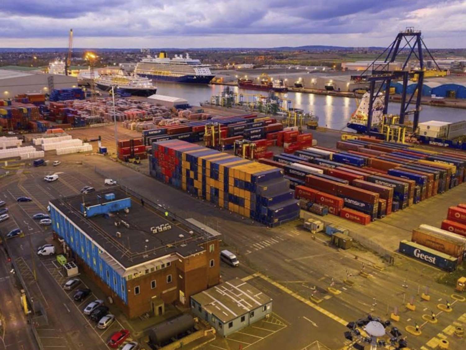 It took the terminal team most the day to identify and reshuffle the 137 empty boxes to bring the message to life, with around 400 moves required to create the message, which now greets all lorries entering the container terminal.