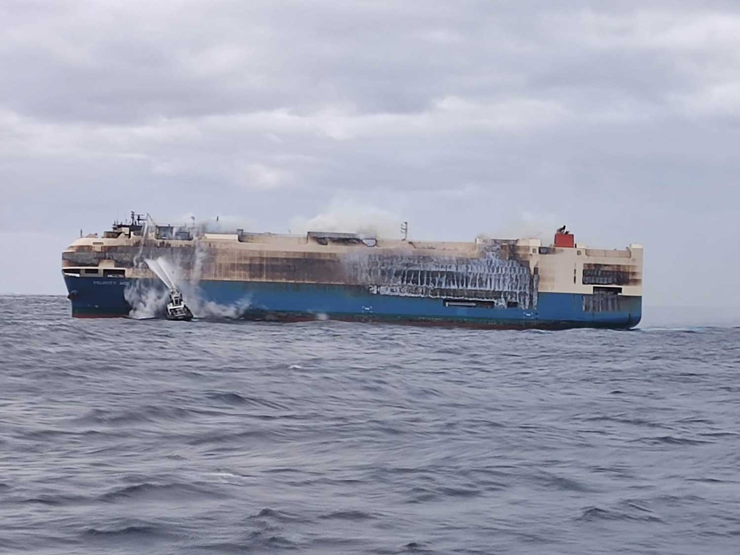 Two large tugs with firefighting equipment rendezvoused with the Felicity Ace earlier this week to start spraying water and work with an initial salvage team that was already on board to cool down the ship.